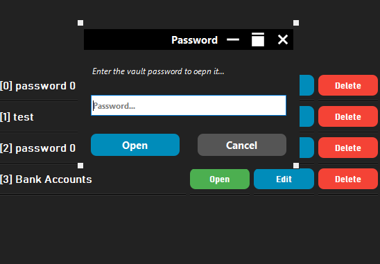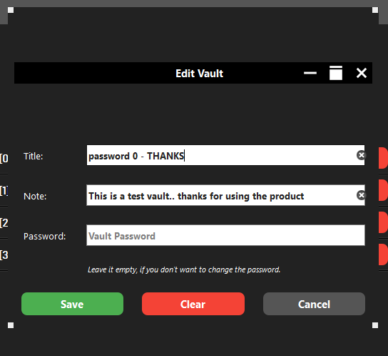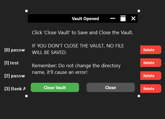 • - You can store multiple files/directories in a vault with application passcode and vault password to open the vault.