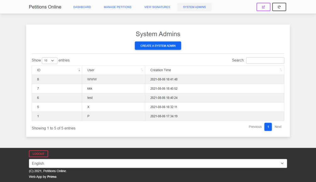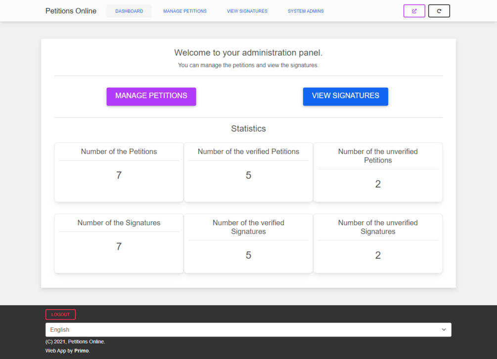 Important notice: Petition images are stored in the database itself, so the application might get slow if there are many images (~10,000) or large size images.